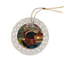 - Ceramic Ornament is flat and measures 3" in diameter