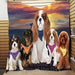 Family Sunset Portrait Cavalier King Charles Spaniel Dogs Quilt