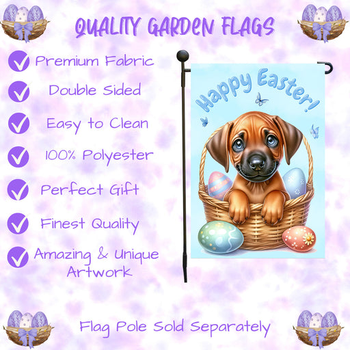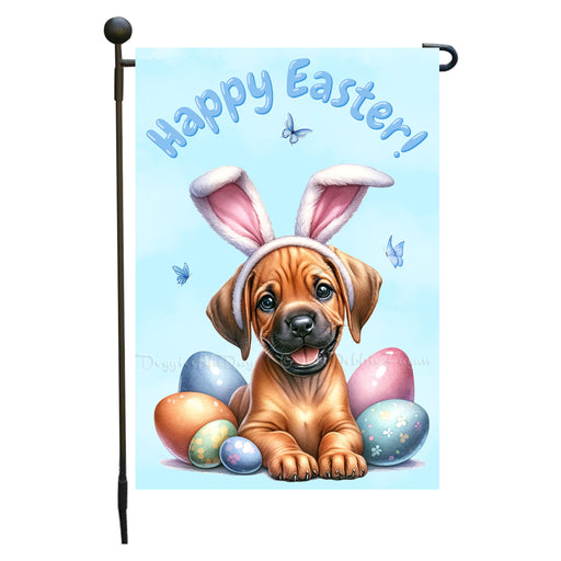 Doggie of the DayRhodesian Ridgeback Spring Easter Garden Flag Puppy Eggs Outdoor Yard Decor Gift Celebrate spring with this Rhodesian Ridgeback Easter garden flag...