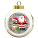 Custom Personalized French Bulldog With Santa Wrapped in Light Christmas Round Ball Ornament