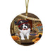 Enter at Own Risk Trick or Treat Halloween Saint Bernard Dog Round Flat Christmas Ornament RFPOR53247