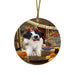 Enter at Own Risk Trick or Treat Halloween Saint Bernard Dog Round Flat Christmas Ornament RFPOR53248