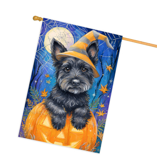 Doggie of the DayWelcome the spooky season with this charming Scottish Terrier Halloween house flag featuring a playful dog in a witch hat surrounded by pumpkins...