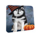 Happy Halloween Siberian Husky Dog Wearing Witch Hat with Pumpkin Coasters Set of 4 CST54736