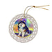 - Ceramic Ornament is flat and measures 3" in diameter