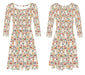 Rainbow Paw Print Siberian Husky Dogs Red 3/4 Sleeve Sundress
