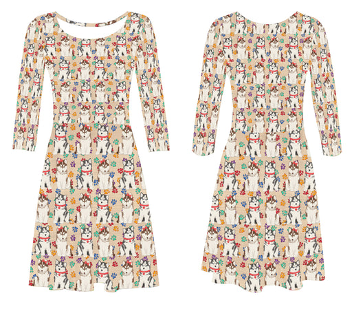Original price $89.00 - Original price $89.00Original price$89.00$89.00 - $89.00Current price $89.00| /Rainbow Paw Print Siberian Husky Dogs Red 3/4 Sleeve Sundress