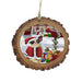 You will be sure to spread Holiday cheer this year when you display your round wooden shaped ornament and it will be a unique addition to your tree!