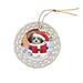 - Ceramic Ornament is flat and measures 3" in diameter