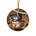 Enter at Own Risk Trick or Treat Halloween Tibetan Terrier Dog Round Flat Christmas Ornament RFPOR53300
