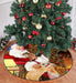 Santa Sleeping with Scottish Fold Dogs Christmas Tree Skirt