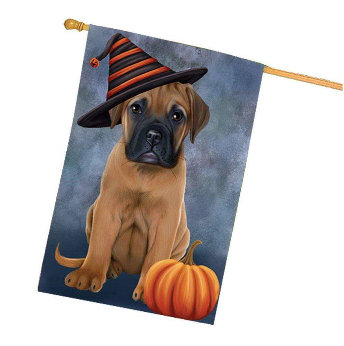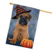 Happy Halloween Bull Mastiff Dog Wearing Witch Hat with Pumpkin House Flag