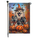 Keeshond Witch Hat Pumpkin Bat Halloween Garden Flag for Spooky Outdoor Decorations Autumn Farmhouse Garden Patio Seasonal Jack-O-Lantern Yard Decor