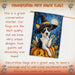 - Features a Rat Terrier dog, pumpkin, witch hat, and spider web Halloween design