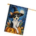 Rat Terrier Halloween House Flag Pumpkin Witch Hat Large Outdoor Banner Fall Home Porch Yard Decoration 28 x 40 Inch